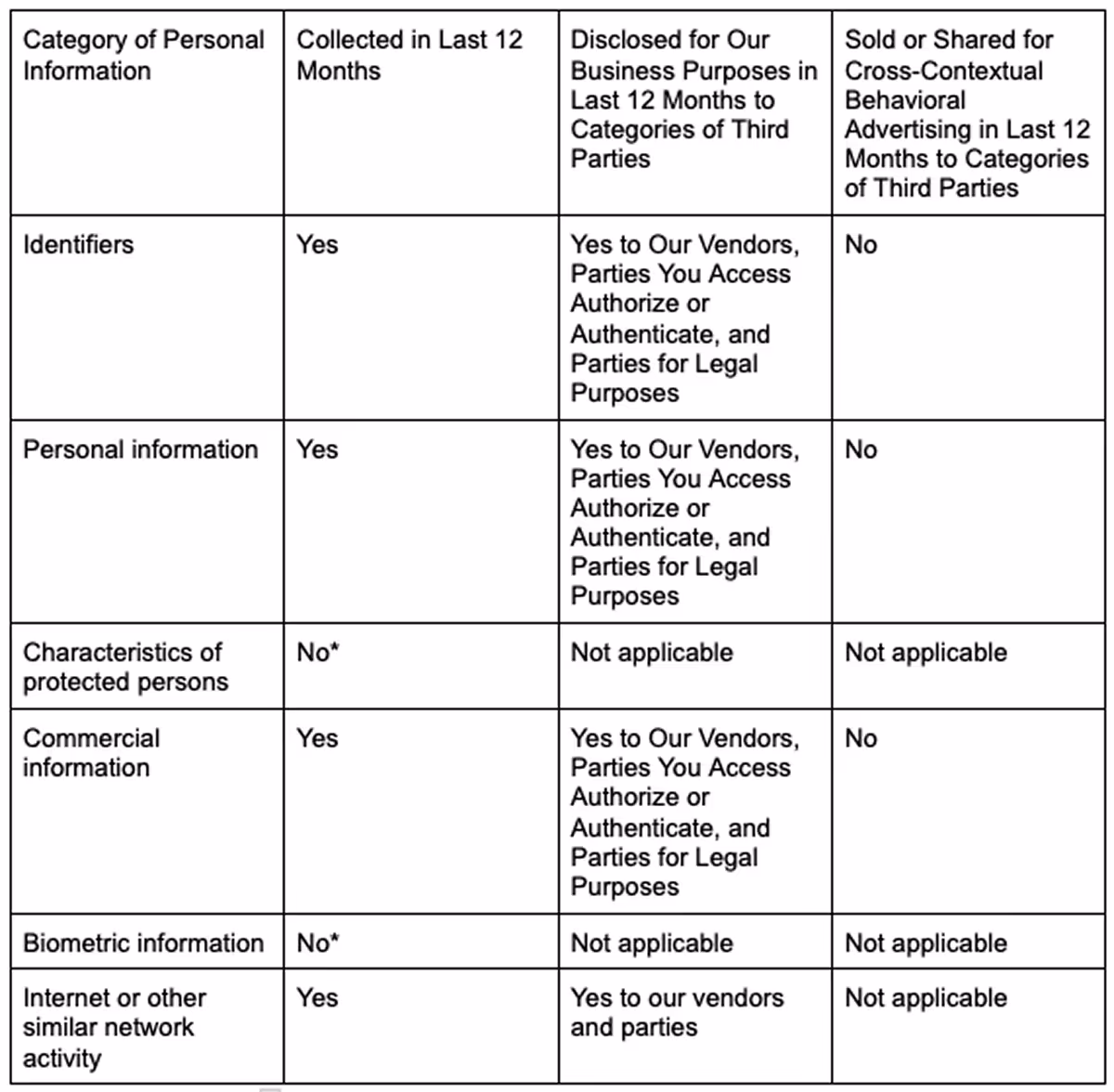 - Parties You Access, Authorize, or Authenticate including third parties you access through the Services, such as identity verification service providers