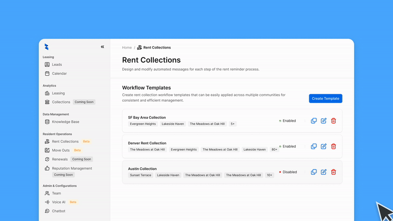 โก Easy Operations: Manage rent-related tasks, from follow-ups to walkthrough notices, all in one intuitive place.